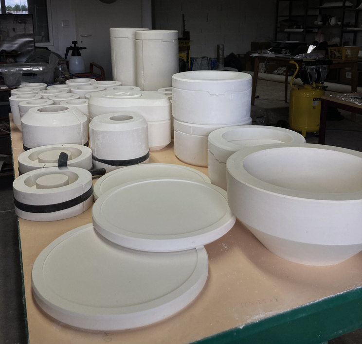 Outillage complet pour le coulage de 100 assiettes en forme de mains.
