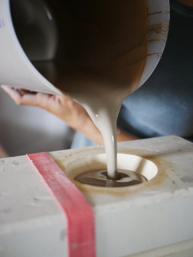 Modèle issu du moulage des mains du client pour la fabrication d’assiettes.